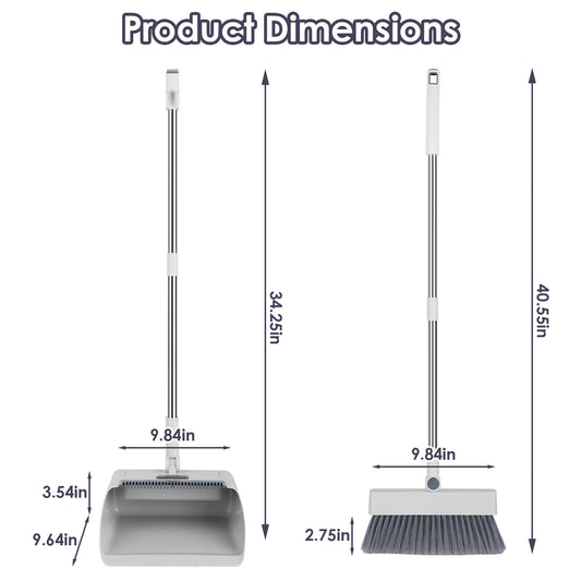 1Set Broom And Dustpan Combo Set With Squeegee Stainless Steel Handle 4 In 1 Upright Standing Broom And Dust Pan For Indoor Outdoor Garage Kitchen Room Office Sweeping