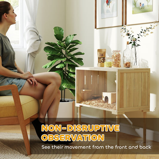 Wooden Hamster Cage With Legs, Gerbil Cage For Syrian, Dwarf, Mouse, 28 X 16 X 29.5, Nature Wood