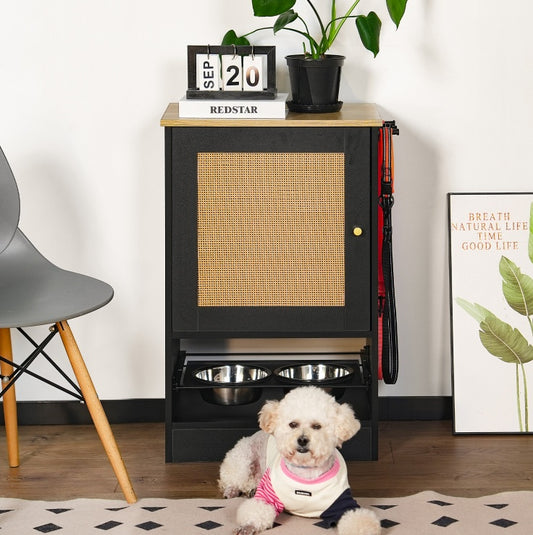 Feeding Station With 1 Locker, Pet Feeding Station With 2 Overhead Dog Bowls, Side Hooks, Anti-Tipping Kit, Concealed Pet Feeding Station For Feeding And Drinking, Black