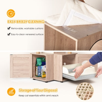 63 Multi-Functional Cat Tree With Litter Box - Includes Removable Washable Cushion, Scratching Posts Toy Hanger, Modern Design, Rustic Gray
