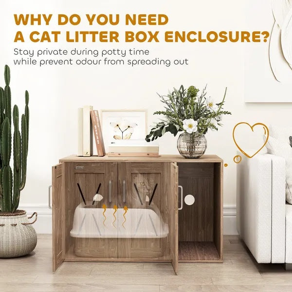 Cat Litter Box Enclosure With Scratching Board, Cat Washroom End Side Table, 31.5 X 19 X 20 Inch, Walnut Brown