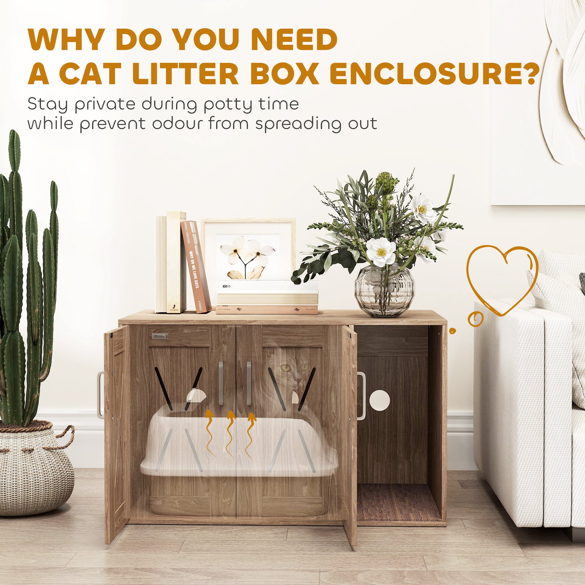 Cat Litter Box Enclosure With Scratching Board, Cat Washroom End Side Table, 31.5 X 19X 20, Walnut Brown