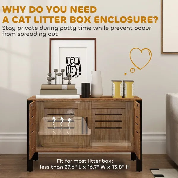 Cat Litter Box Enclosure With Tall Legs, Scratching Board, Dark Brown