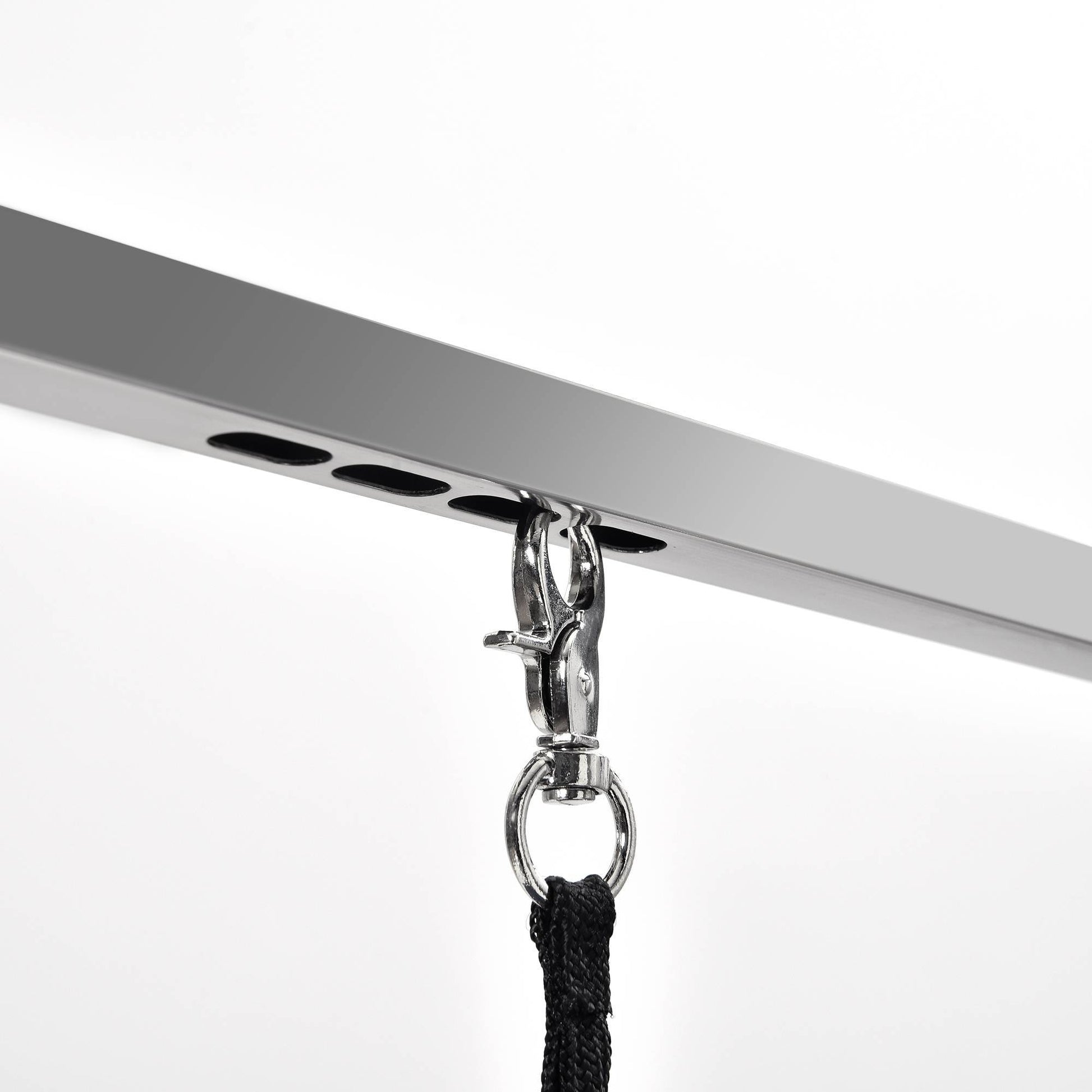 Comes with a clamp-on Adjustable Grooming Arm and security nylon Loop.